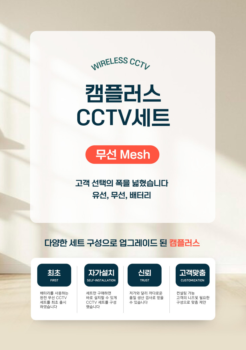 • [캠플러스] 400만 8채널 4뷸렛 무선 카메라 CCTV 세트(하드2TB포함) CT-4AB804-2T