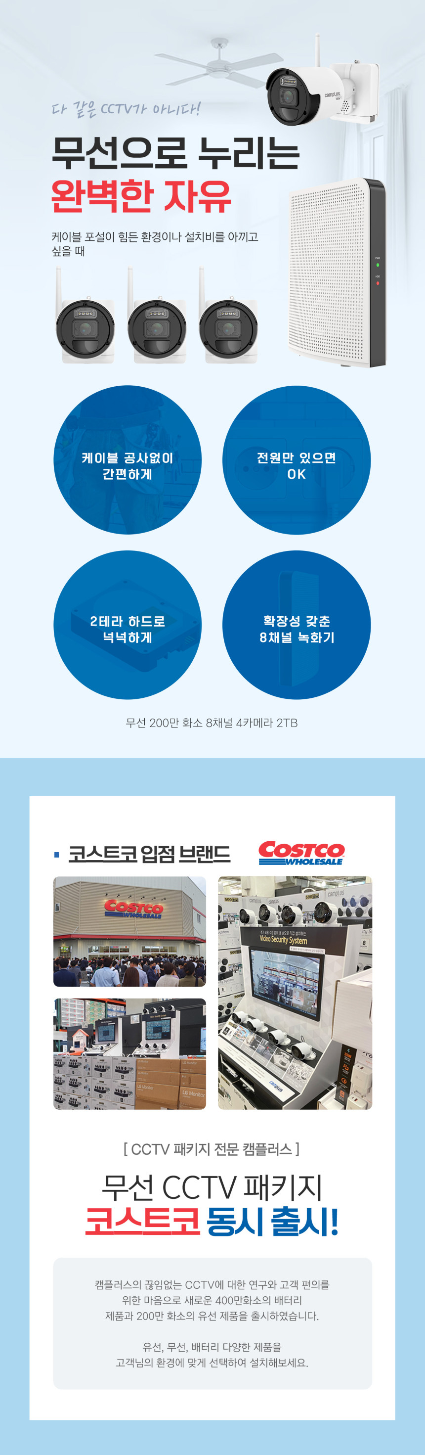 [캠플러스] 400만 8채널 4뷸렛 무선 카메라 CCTV 세트(하드2TB포함) CT-4AB804-2T